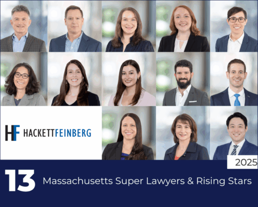 Super Lawyers has selected 13 Hackett Feinberg attorneys for inclusion on the 2025 Massachusetts Super Lawyers and Rising Stars lists.